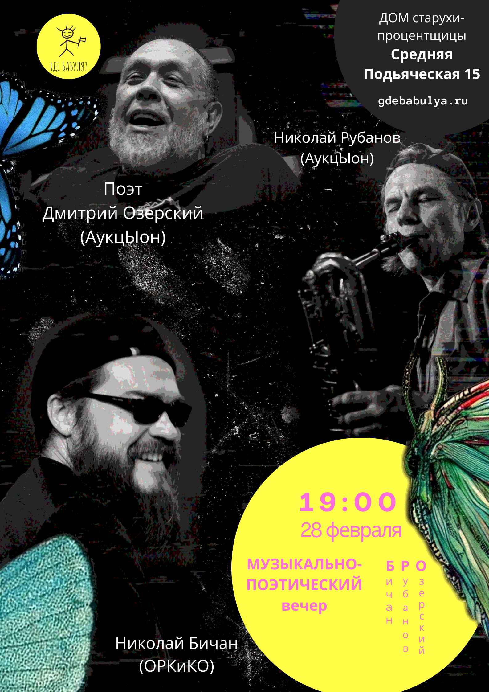 28 февраля (вс) 19:00 Музыкально-поэтический вечер БРО (Бичан,Рубанов,Озерский)